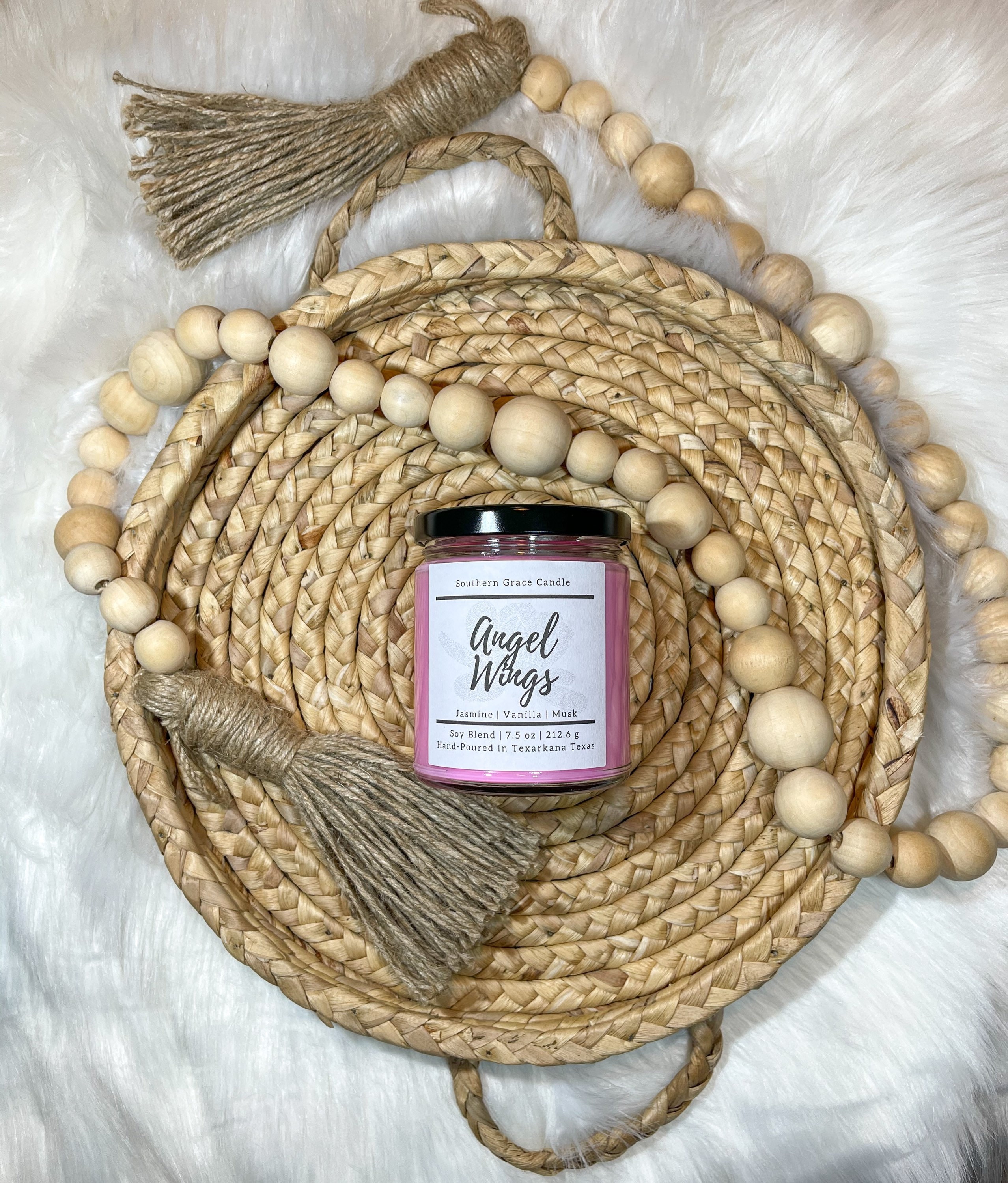 Angel Wings blends soft scents of rose and jasmine with touches of sweet french vanilla and musk. This wonderful aroma embraces the softness of a newborn baby and the creaminess of vanilla custard. 7.5 ounces of our custom soy blend wax.