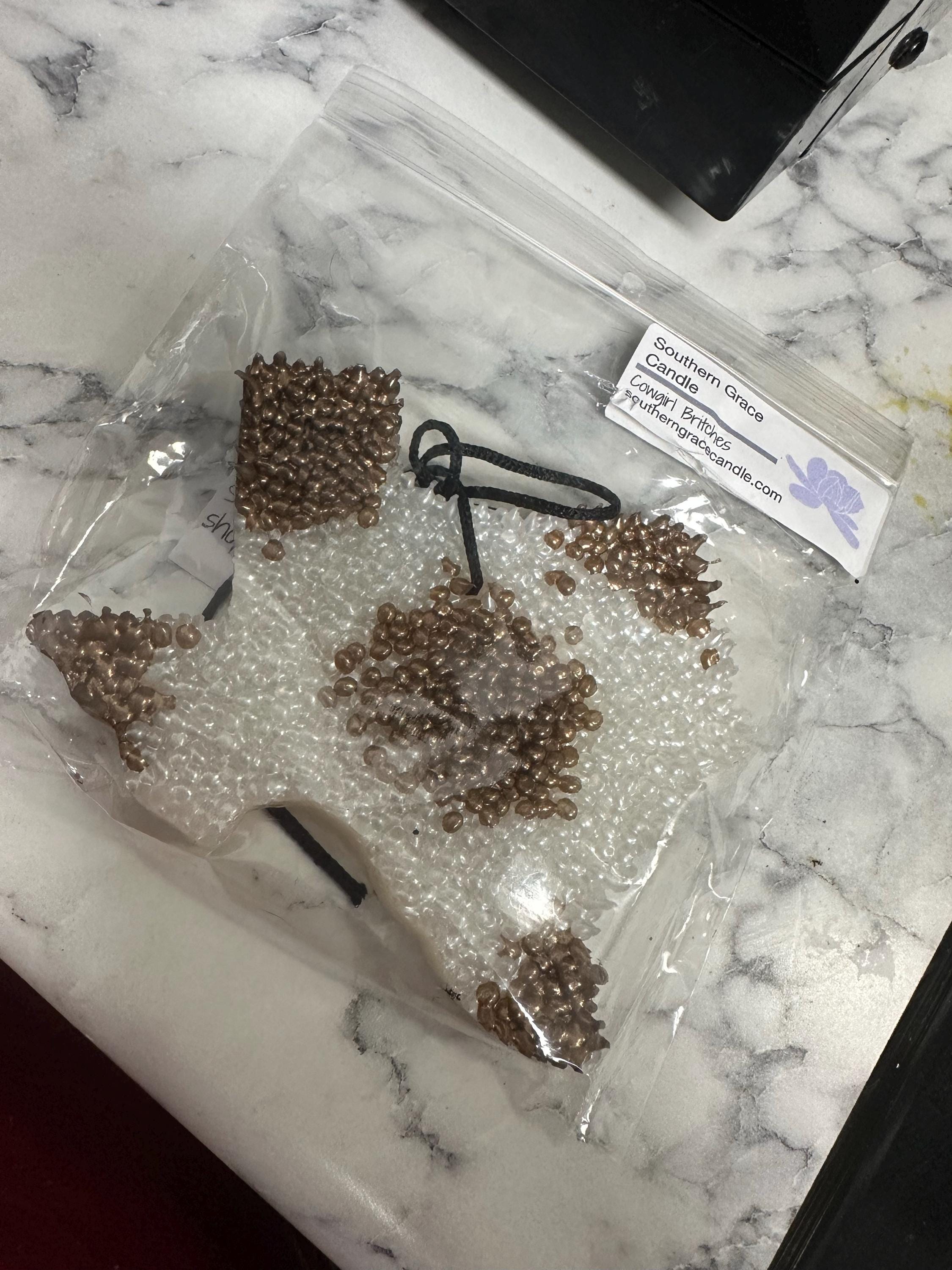 Freshies last anywhere from 2-12 weeks. Always hang freshies, placing on surfaces may stain or damage. May melt in extreme heat. Do not consume. Keep away from small children and pets. Do not attempt to melt in wax warmers. IF YOU USE A SUNSHADE, MAKE SURE THE FRESHIE IS HANGING INSIDE OF THE CAR AND NOT BETWEEN THE SHADE & YOUR WINDSHIELD.